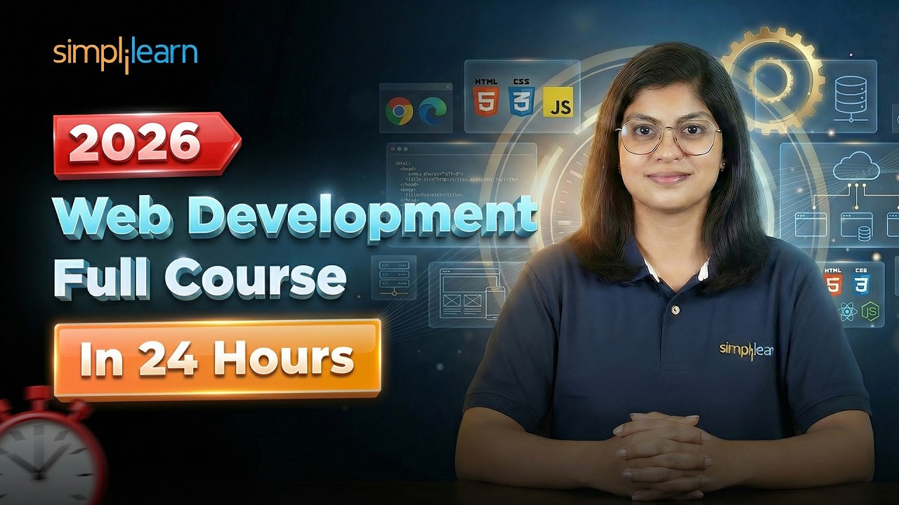 This video on Web Development Full Course by Simplilearn will help you learn web development from scratch in a simple and practical way. This complete web development tutorial covers everything you need to become a web developer in 24 hours. You will start with the basics of HTML to build the structure of web pages. Then you will learn CSS to design and style responsive websites. The course also covers JavaScript to add interactivity and dynamic features to your web applications. You will understand important concepts like DOM manipulation, forms, validation, and website layout design. This web development course also introduces Bootstrap for responsive design and modern UI development. You will get an overview of front-end and back-end development concepts. The tutorial explains how websites work, including servers, browsers, and hosting. It also covers basic knowledge of databases and how web applications connect to them. With hands-on examples and real-time projects, you will gain practical coding experience. This beginner-friendly web development training is perfect for students, freshers, and working professionals who want to start a career in full stack development. By the end of this course, you will have strong web development skills and the confidence to build your own websites and web applications.
