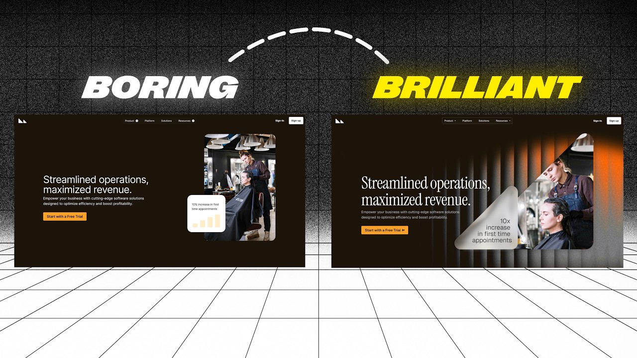 I share six simple design techniques you can apply right away to make websites more visually compelling and effective: improve typography by choosing an anchor headline font and pairing it with contrasting supporting fonts (using resources like Fonts In Use); add a “star of the show” element that connects to the site’s story rather than just looking cool; use visual rhyming to repeat small details (shapes, gradients, motifs) for cohesion; add subtle depth with textures, noise, and glass effects without competing with the star; create clearer hierarchy with varying text opacity levels; and push past your first idea by making radically different design variations to find the best version.